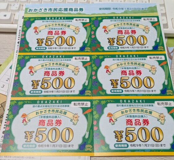 「おかざき市民応援商品券って、どこで使えるの?」「スーパーでも使える?」「期限はいつまで?」と気になっている方も多いのではないでしょうか。2026年の岡崎市では、物価高騰対策として、市民1人あたり3,000円分の商品券が配布されています。申請不要で届くうえ、岡崎市内だけでなく隣接市町の登録店でも使えるのが大きな特徴です。この記事では、対象者、使える場所、代表的なお店、使い方、注意点まで、わかりやすく解説します。